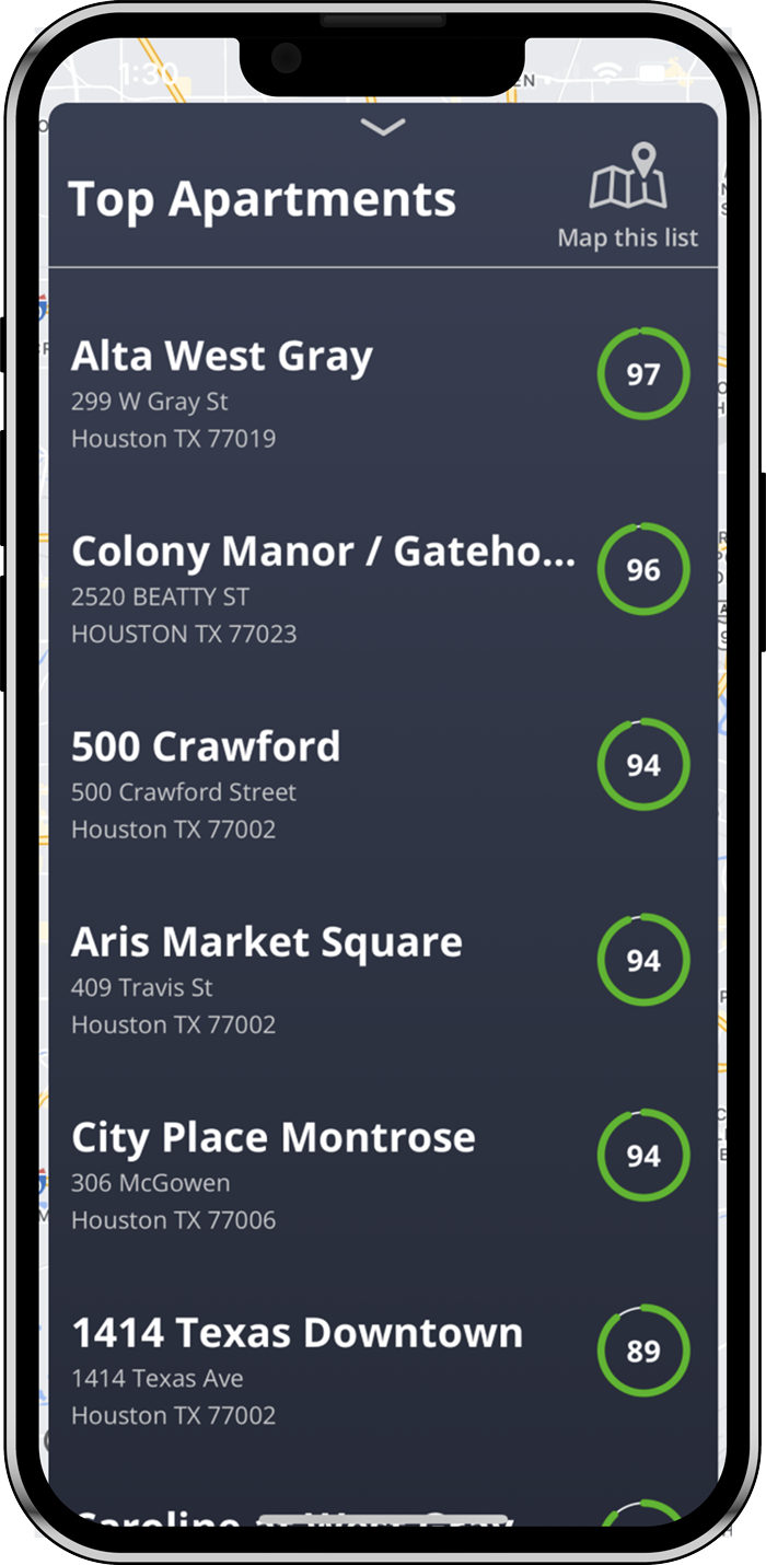Our easy-to-use app is the final step in your apartment search adventure, simplifying your decision based on what matters most: your happiness.